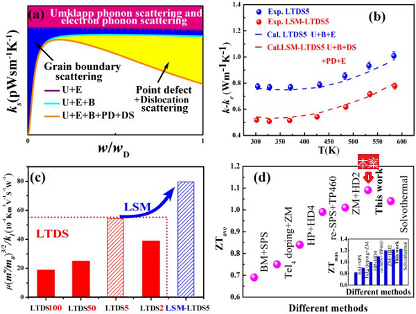 据介绍,优异的热电材料应具备高的赛贝克系数和电导率,以及低的热导率;因三种性能参数内在相互制约,若优化其一种性能,则易恶化其它性能,故热电转换效率难以显著提高。祖方遒教授及其团队,基于液态物质状态改变的长期基础研究积累,开创了熔体处理法制备热电材料,籍以调控凝固微观组织,显著降低热导率的同时,也显著提高赛贝克系数,而电导率基本不受损失,实现了电学性能与热学性能的协同优化。他们在与国内、德国及澳洲有关科研机构开展的合作中,还利用多种现代分析手段,探索了不同尺度微观结构对声子散射、载流子浓度、迁移率等作用和物理机制。