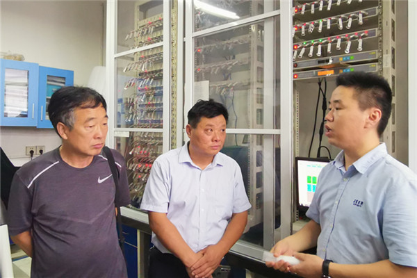 随后,在材料物理系党支部书记项宏发老师的带领下,张彬等一行参观了英国365集团官网锂离子电池实验室。项宏发对于实验室的基本情况做了简单介绍,并表示目前应用比较广泛的锂离子电池隔膜是一种聚合物多孔膜材料,这种材料的生产工艺与企业现有的产品工艺相对比较贴近,建议驻村企业可以结合现有的纸品产品生产线,根据企业的实际情况提升产品研发方向,逐渐从生活用纸向性价比较高的功能性材料方向转变。