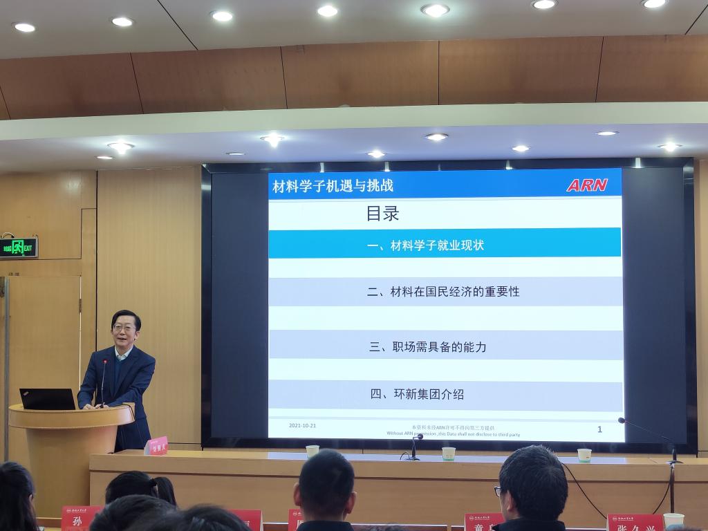 颁奖仪式结束后,刘铜庆以“材料学子机遇与挑战”为题,用翔实的数据和丰富的图表阐述了材料学子就业现状,深刻剖析了当前材料行业及材料学子当前存在的问题和面临的机遇与挑战,并强调了材料在国民经济中的重要地位。他还分享了自身职业生涯发展的心得体会,表达了对​英国365集团官网学子的殷切希望,鼓励青年员工树立远大理想,珍惜老员工活,强化专业学习,提高综合素质,争做行业领军人物,为实现中华民族伟大复兴的中国梦贡献自己的青春和力量。