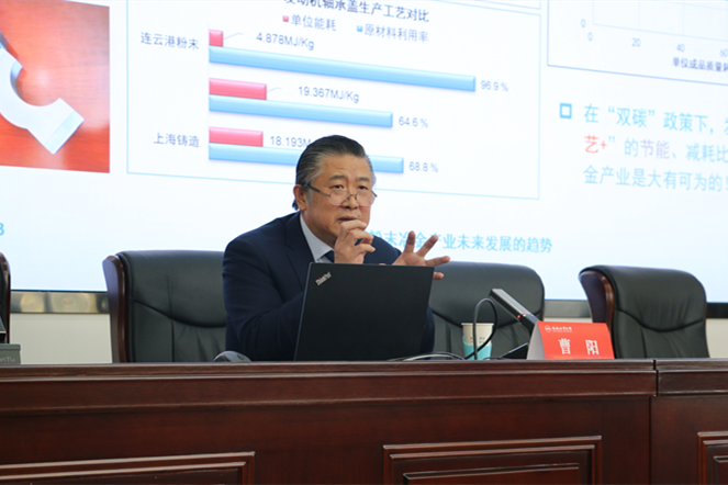 颁奖仪式结束后,曹阳以“中国粉末冶金产业未来发展的趋势”为题,用详实的数据和图表深度讲解了中国粉末冶金的生产工艺、市场状况和发展方向,展现了粉末冶金在零部件生产以及高新科技产品中的重要地位。同时他也表达了对广大材料学子的殷切期盼,鼓励青年老员工树立远大理想,强化学习意识和奉献精神,争做新时代行业的领头羊,为实现中华民族伟大复兴贡献出自己的一份青春力量。