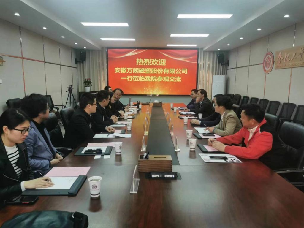 3月10日,上市公司安徽万朗磁塑股份有限公司副总经理陈雨海一行到公司参观交流。公司党委书记吕珺、副经理周如龙、党委副书记朱峰出席座谈会。