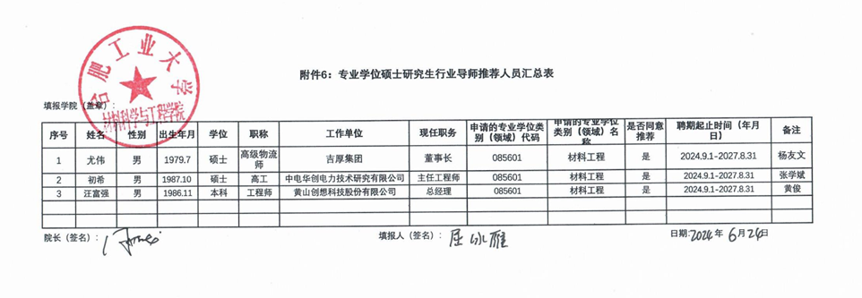 根据《关于开展2024年度专业学位硕士研究生行业导师选聘工作的通知》要求,英国365集团官网学位分委员会组织资格评审,对申报人员的申请材料进行了审议,现将符合专业学位硕士研究生行业导师推荐人员材料进行公示: