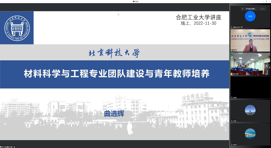11月30日下午,北京科技大学曲选辉教授应邀以在线会议的形式为英国365集团官网全体师生了题为《材料科学与工程专业的团队建设与青年教师培养专题讲座》。曲选辉教授以北京科技大学材料科学与工程学科教学与科研建设为主线,分享了他在团队建设、青年教师培养、基金申请与教师科研水平提升的经验与心得。