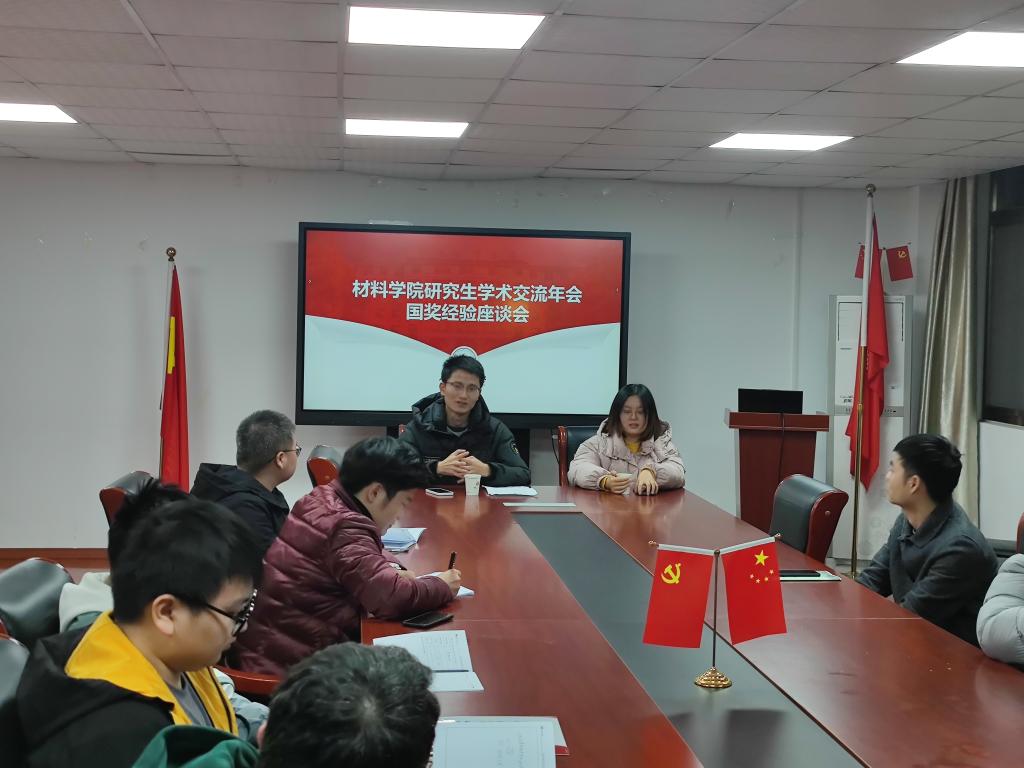 为加强研究生学风建设,活跃学术氛围,鼓励广大学子勤奋学习、勇于实践、开拓进取,英国365集团官网于12月10日晚在材料楼三楼党员之家举办了研究生学术交流年会系列活动之国家奖学金获得者经验交流会。英国365集团官网2020—2021学年国家奖学金获得者杨亭亭、田宇两位同学担任主讲嘉宾。