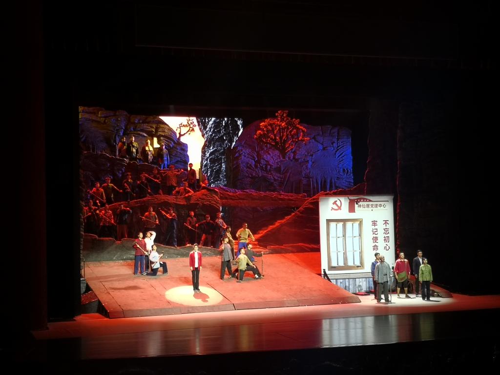 《太行》由山西艺术职业公司创作,取材于建国初期太行山居民在基层党组织的带领下用几十年时间开凿“脱贫公路”的故事。老一代党员干部在艰苦环境中用热血和生命前仆后继劈山开路,映射出建国以来的一代代基层党员干部不畏艰险造福百姓的执着品质。“太行山再硬,硬不过太行人的骨头;太行山再高,高不过太行人对美好生活的追求!” “路不打通,人不下山!”一个多小时的演出带领观众重温了太行山上人民不畏自然,敢与天公试比高的抗争精神。激荡起复的剧情,令观众潸然泪下;精妙卓绝的表演,引得掌声阵阵。