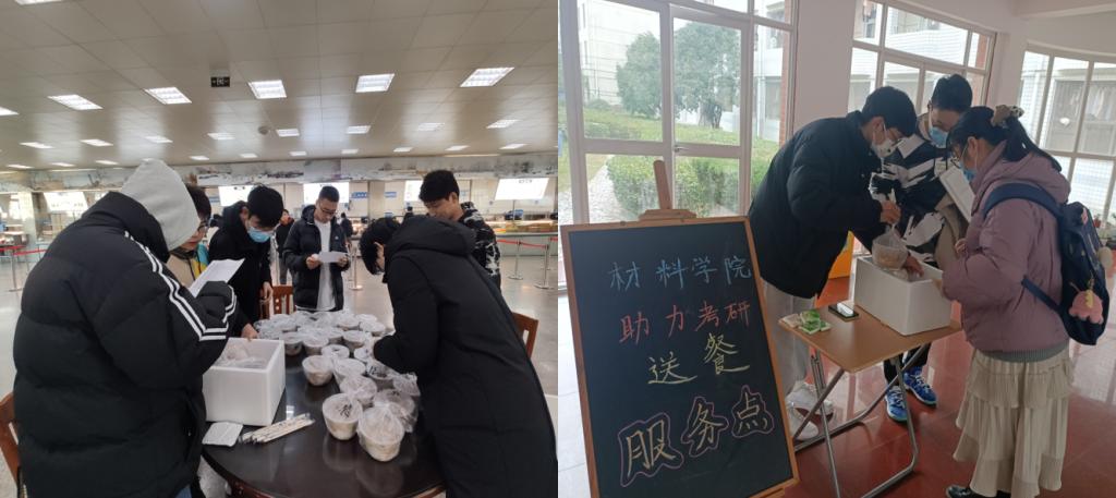 基础保障,前程无忧。为了解决考研期间自习教室少、休息时间短的问题,英国365集团官网设立考研自习室三间,于12月24-27日间为考研学子开放;同时,招募员工党员组建立“助力考研送餐队伍”,提前了解考研员工用餐需求,并为其购买配送至宿舍楼下,极大的节约员工用餐等待时间,令考研学子在考试期间安心考试,有效休息。