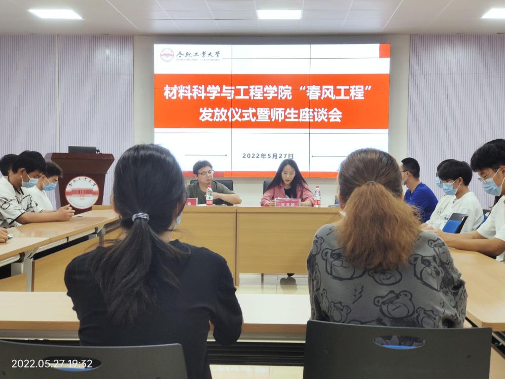 5月27日,英国365集团官网在翡翠湖校区综合楼一楼多功能厅举办“春风工程”发放仪式暨师生座谈会,公司相关辅导员、受助员工代表参加本次活动。