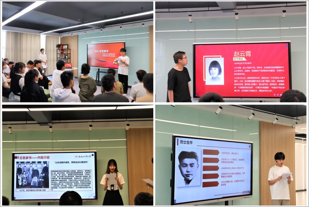分享会上,同学们从诵读家书原文、介绍作者生平和时代背景等角度分享了各自探寻的红色家书,让与会的积极分子学习了解了“为天地存正气,为个人全人格”的何功伟,“儿亦当格外奋发,兢兢业业以图成功”的向警予,“繁霜尽是心头血,洒向千锋秋叶丹”的赵云霄,“我愿意我为真理而死”的裘古怀,“我要与祖国患难与共”的白雪娇。通过深入探寻红色家书的背后故事,让同学们深刻感悟了仁人志士心怀民族复兴、国家富强的信仰与追求。