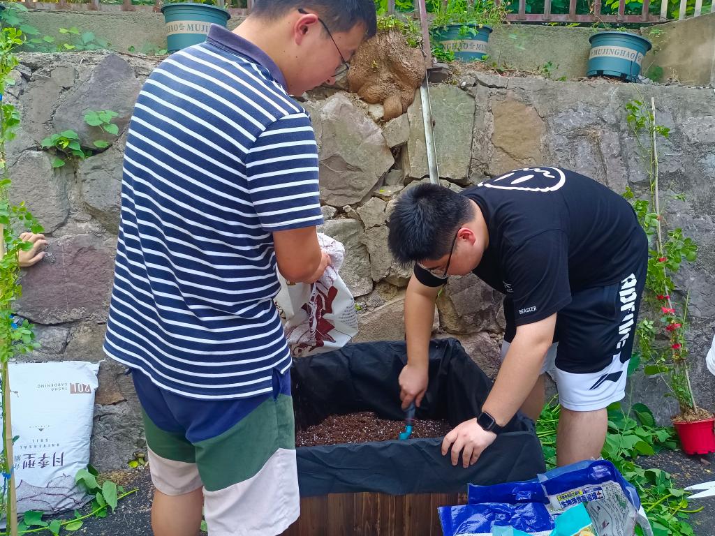 本次纪念花卉种植活动由公司毕业生自发组织。种植现场,毕业生们热情高涨,分工协作。装箱运土、搬运花苗、培土施肥、栽种浇水,和师长同窗一起种下充满青春记忆的花苗。栽种完成后,毕业生们将印有“长材茂学,繁花似锦——英国365集团官网二零二二届毕业生留念”纪念牌郑重地挂上花箱,并邀请老师同学在花前合影留念。