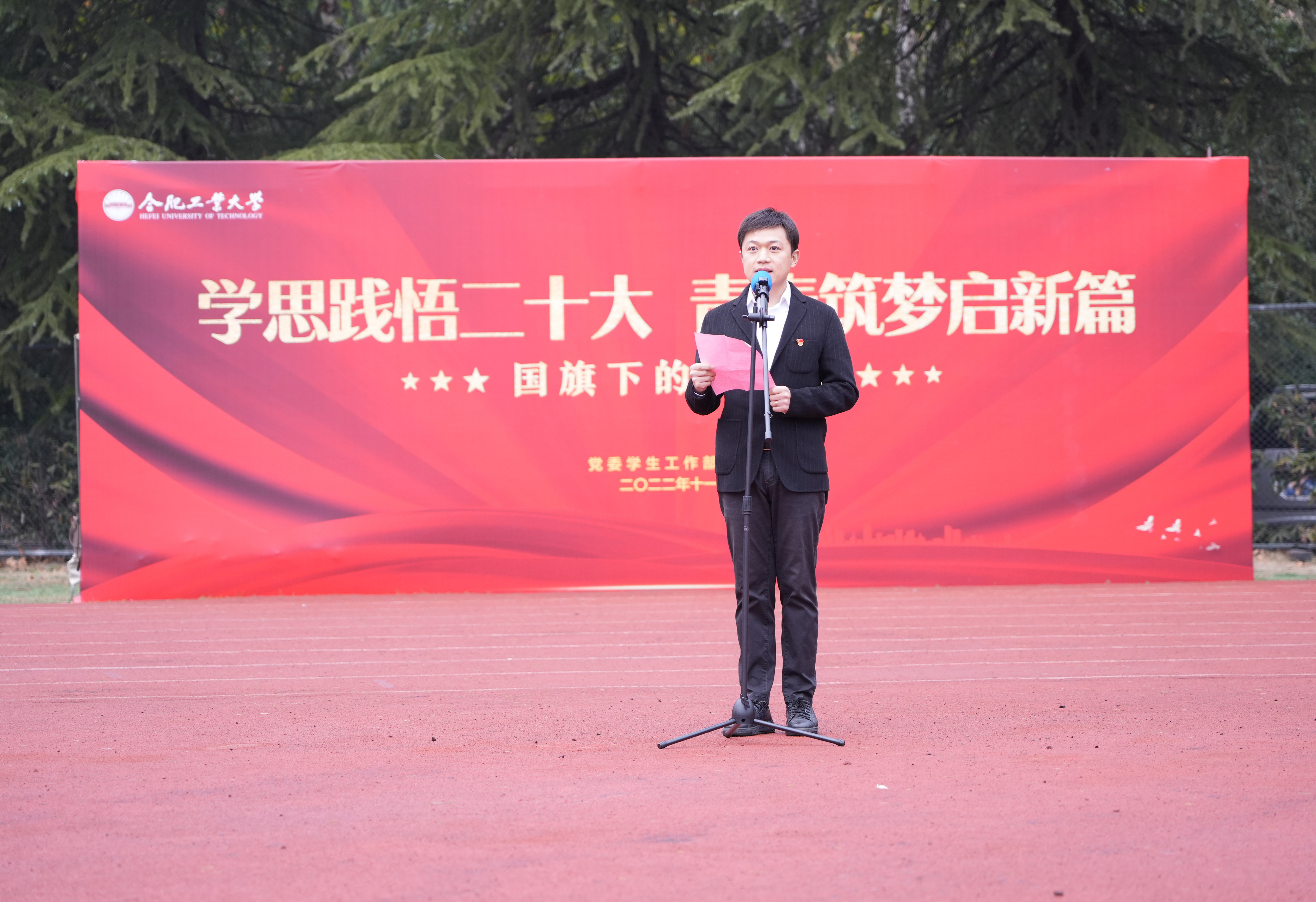 11月14日清晨,英国365集团官网在屯溪路校区举行了以“学思践悟二十大 青春筑梦启新篇”为主题的升旗仪式暨国旗下的思政课主题教育活动。公司相关负责人、2019级、2020级全体本科生和研究生参加活动。