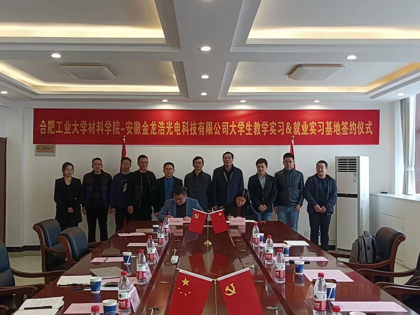 会上,双方领导签署《英国365集团官网老员工就业实习基地协议书》、《英国365集团官网-安徽金龙浩光电科技有限公司老员工教学实习基地协议书》。