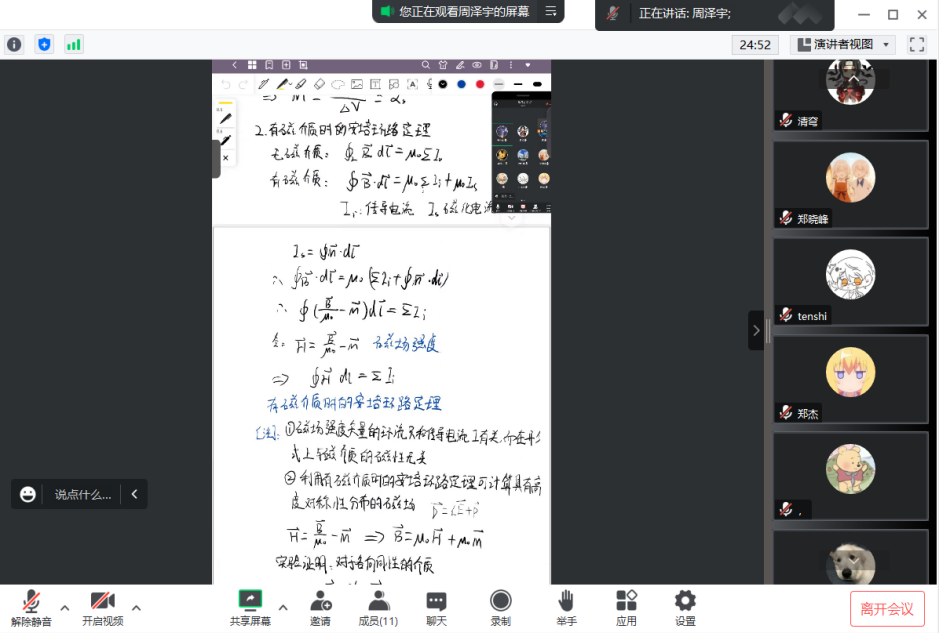 “在线小讲堂”主要教授内容为《概率论与数理统计》《大学物理B(下)》两门通识教育必修课。活动前期,公司在线上公开招募讲师团成员,共计选拔6名朋辈讲师参与线上小课堂活动。朋辈讲师在授课前认真制定教学计划,集体备课,做好充分授课准备。活动过程中,讲师们针对课程基础知识和常考易考例题,帮助同学们梳理知识架构、查漏补缺。课堂的交流环节中,小讲师也耐心地解答同学困惑,营造良好的线上课堂氛围。为适应不同同学的学习节奏,公司同时开展“线上自习室”活动,以腾讯会议为载体,以高自由度为原则,鼓励同学们自行规划学习。同学们每日进入会议后便自行安排复习,自习室里浓厚的学习氛围在一定程度上起到督促作用。