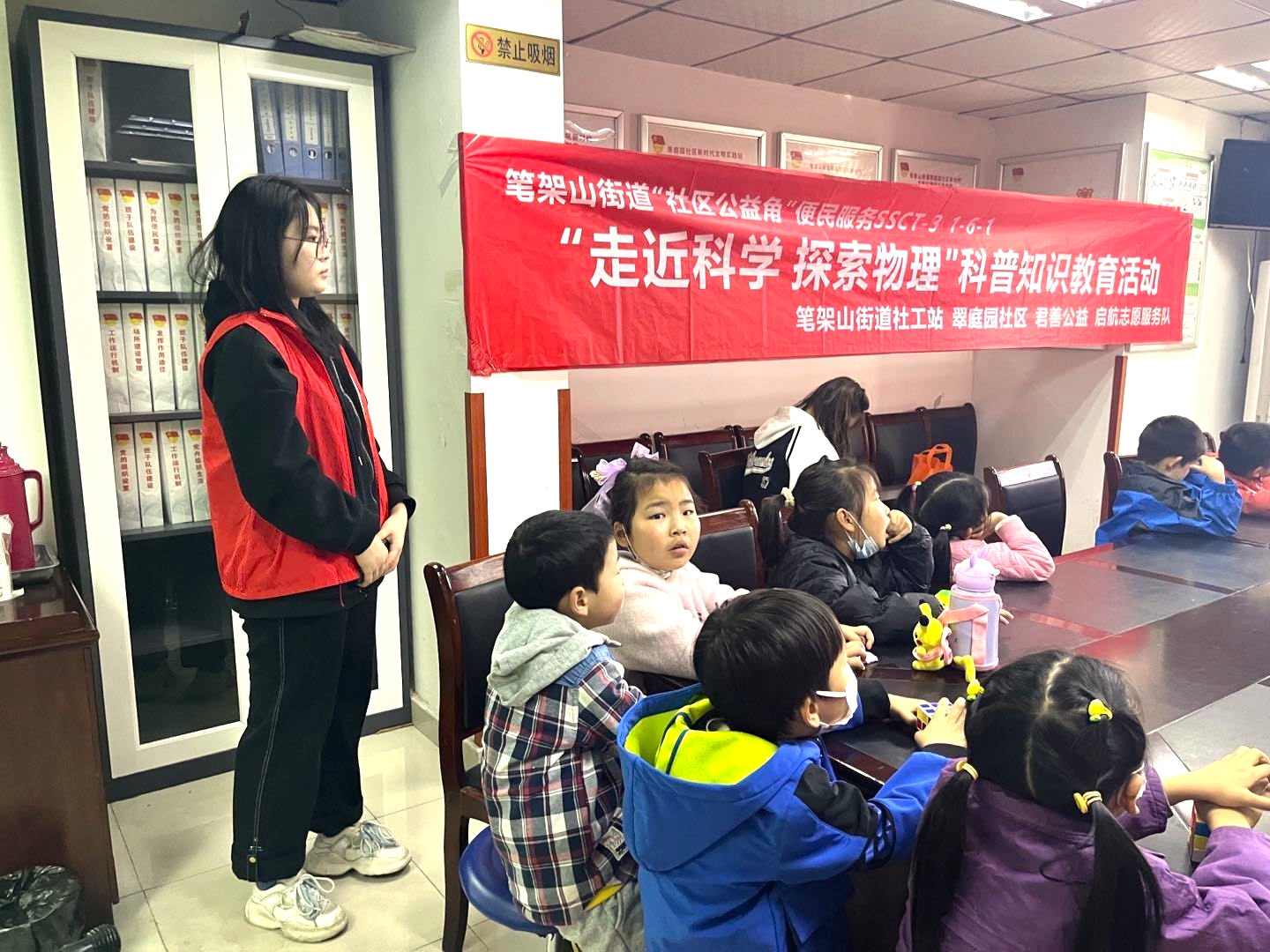 3月12日上午,2名员工志愿者前往翠庭园社区党群服务中心,与中国科学技术大学志愿者讲师一同为小朋友们讲授了一节富有乐趣的科普教育课,通过课堂板书讲解,手工实践项目以及科学小实验,小朋友们了解了更多科学知识,掌握了实验方法,获益匪浅。