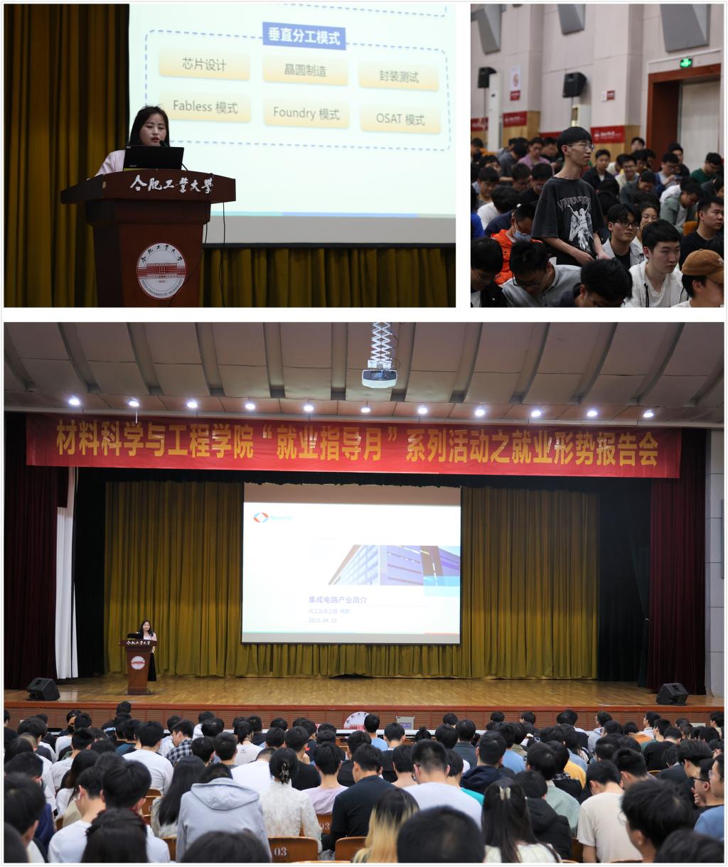 报告会邀请合肥晶合集成电路股份有限公司代工业务三部项目经理杨黎主讲。杨黎以集成电路产业就业形势为切入点,详细分析了集成电路的概念、全球集成电路产业格局、集成电路产业链全景图、全球主要晶圆代工厂制程节点和集成电路行业当前就业形势,向同学们展示了当前集成电路产业蓬勃发展态势和广阔就业前景,号召广大青年学子胸怀工业报国志向,投身集成电路行业,攻坚“卡脖子”技术难题。同时,她鼓励全体同学明确职业发展方向,找准定位、把握机遇,增强就业信心。公司校园招聘负责人张海帆从企业概况、发展历程、业务范畴、薪酬待遇等方面进行了介绍,帮助同学们进一步了解企业文化、人才需求,进一步认清就业形势,了解相关就业政策。最后,同学们围绕集成电路行业发展方向、企业福利待遇、职业晋升通道等进行了提问,与会企业相关负责人耐心给予解答。