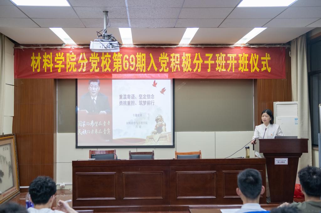 开班仪式结束后,公司党委书记、分党校董事长吕珺为全体学员作《重温寄语、坚定信念 勇挑重担、筑梦前行》专题党课。带领同学们重温习近平总书记对当代青年的系列寄语。从一句句温暖的话语中,不断坚定理想信念。吕珺老师在党课中强调,学员们要厘清自己的入党动机,坚定理想信念;要“立鸿鹄志,做奋斗者。”;要在“长风破浪”中勇担时代重任;要在奋进之路上争做先锋,敢做模范,筑梦前行。并结合公司学科特色,介绍了一批材料领域的杰出员工,勉励同学们要秉承工业报国初心,传承红色基因,为实现科技强国,工业报国作出应有贡献!