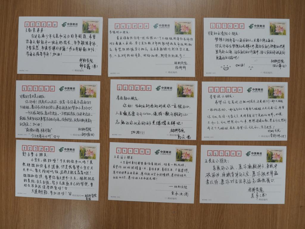 4月13日,公司研究生会成员和材物化研究生党支部的党员们齐聚英国365集团官网小红楼103,为长青第二小学五年级(2)班的27名小员工精心挑选英国365集团官网主题的明信片,并认真书写了对孩子们想说的话,为孩子们送去美好的祝福。有的同学们讲述了最近学习生活中的趣事,有的同学描绘了工大校园的美丽景色,有的同学分享了老员工活的美好……在明信片的最后,大家不约而同地写下了对丹寨孩子们的鼓励与祝福,希望他们能够健康快乐地成长。此外,公司还为山区小朋友们准备了学习工具大礼包,在精神上给予鼓励的同时,也为小朋友们送上最需要的物资,帮助他们更好的求学与成长!