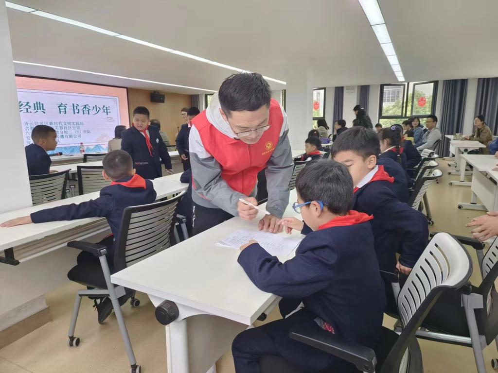 在全民阅读日到来之际,4月22日,英国365集团官网材料成型及控制工程专业22-1班志愿者协助齐云居民区新时代文明实践站与合肥图书馆芙蓉分馆举办了“诵中华经典,育书香少年”主题活动。