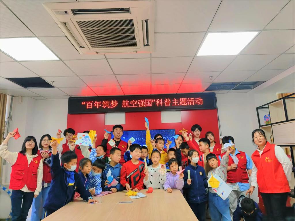 在本次志愿服务活动中,志愿者们先在社区工作人员带领下,开始打扫卫生,布置场地,做好前期准备。在宣讲活动中,通过主持人的讲解,带领孩子们回顾了中国航天事业的发展历程,感受到我国航天工作者承担的重大使命与责任,加深了对航天事业的崇敬与热爱之情。同时,课堂上增加知识竞答和航天知识疑问解答环节,有趣的互动环节不仅加深了孩子们对航天知识的印象,也为宣讲课堂营造了轻快愉悦的氛围。在宣讲课堂结束后,志愿者带领小朋友们制作手工作品,如画画、折纸飞机等,让他们在了解我国伟大航天事业的同时也能锻炼动手能力、收获欢乐,并在心中种下一颗小小航天梦的种子。