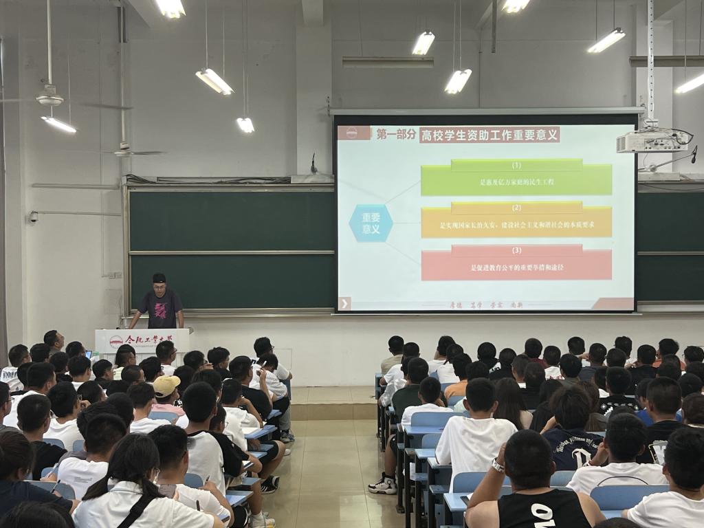9月9日晚,​英国365集团官网组织2023级新生于翡翠湖校区一教102教室开展“员工资助,伴我成长”政策宣讲会,公司资助专员、员工辅导员和320余名新生参加。