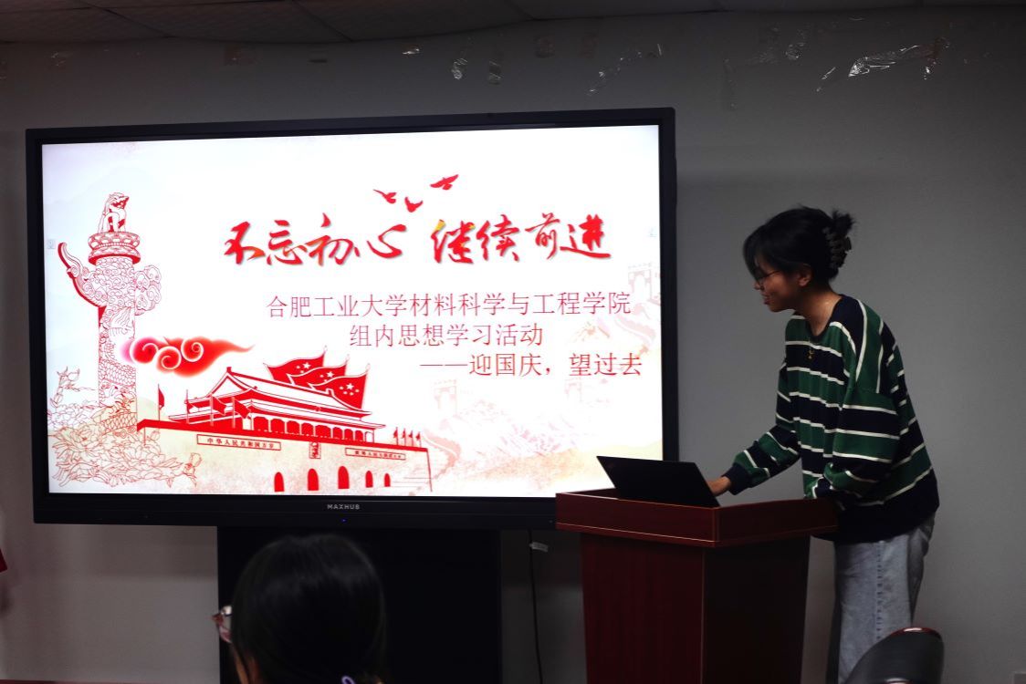 活动中,主持人以“不忘初心,继续前进”为主题,在国庆即将到来之际,带领全体成员共同重温党的光辉历程,传承党的优良传统。通过观看视频,同学们见证了党历经苦难磨砺,走过千山万水,始终不忘初心、牢记使命,从一叶红船到巍巍巨轮,带领新中国从一穷二白到欣欣向荣,从站起来到富起来、强起来,在新时代新征程中勇往直前,在世界百年未有之大变局中坚定向前,不断创造超越时代的人间奇迹,擦亮人民群众的幸福底色。在场的成员们都深刻感受到党在事业发展、时代变迁中迸发的鲜活生命力与创造力,更加坚定了赓续党的红色血脉、弘扬党的优良传统和牢记党的初心使命的理想信念和奋斗信心。