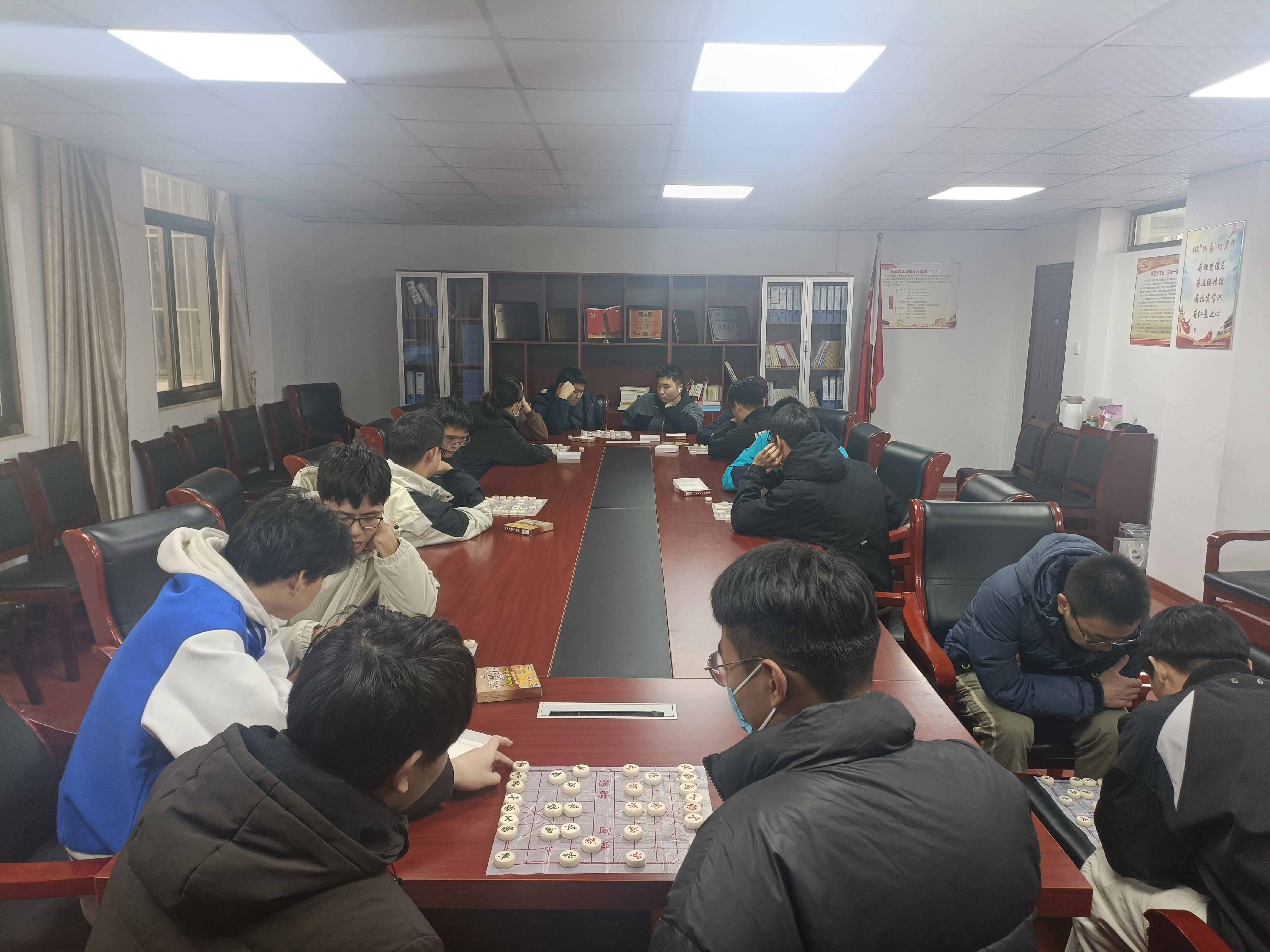 英国365集团官网于12月3日在材料楼党员之家举办了一场以“纹屏乐道,乐在棋中”为主题的精彩象棋比赛。