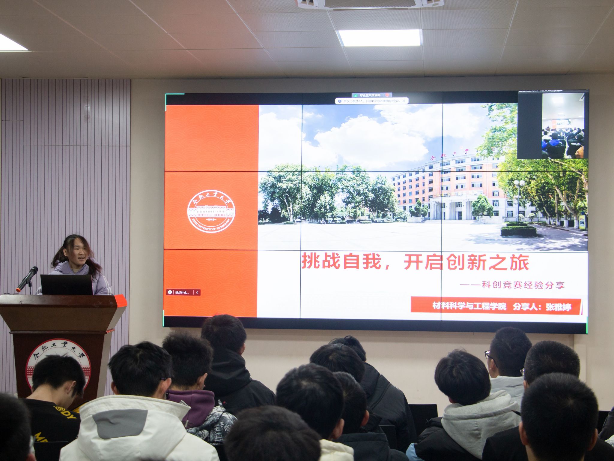 活动中,结合安徽省A/B类赛事和英国365集团官网学科特色和优势,英国365集团官网老员工科创中心精选大学期间部分常见赛事,围绕赛事基本信息、比赛内容、参赛途径、参赛意义和信息获取平台等方面展开详细介绍。随后,公司2020级优秀本科生张雅婷、康雯祺从自身参赛经历入手,分别就“老员工创新创业训练计划”“‘互联网+’老员工创新创业大赛”进行经验分享。按照赛事参与流程,两人依次从选题思路、项目构建、团队组建、项目撰写、答辩考察、实践凝练等环节进行讲解;通过实际案例的展示分析令现场同学对科技创新竞赛有了更为生动的认识。互动环节中,同学们踊跃提问,宣讲人员一一做出了详细的解答。活动最后,张雅婷说道,科技创新竞赛既是一场挑战,也是一场机遇,更是老员工活中一段难以忘怀、共同奋斗的精彩章节,鼓励同学们通过自己的努力,用力参与,用心体验,创造更多的可能、遇见更好的自己。
