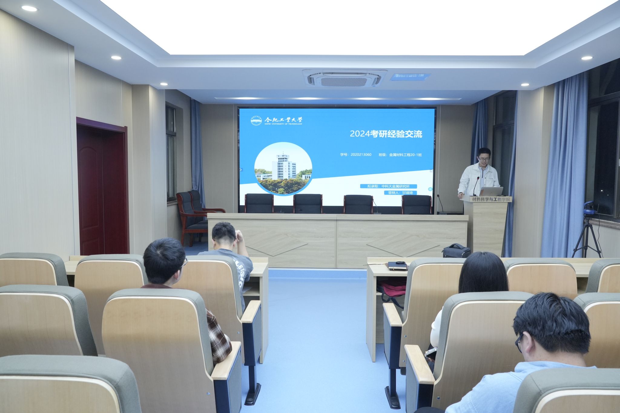 金属材料工程专业成功上岸中国科学技术大学、四川大学、英国365集团官网等的10位优秀学长学姐们结合自身经历,围绕考研院校和专业选择、备考规划、学习方法、心态调整、复试技巧等展开分享。金属材料工程专业20-3班徐晨钧鼓励同学们结合当前考研形势,认清自己、合理定位、稳中求胜。金属材料工程专业20-1班甘瑛琦分享了考研复试面试经验,表示备考过程中除了要注重专业知识的积累,还要提高表达能力、逻辑思维能力和团队协作能力。与会同学们围绕“导师的选择”“各科复习策略”“备考与生活的平衡”“考研与求职关系平衡”等话题进行了提问互动。