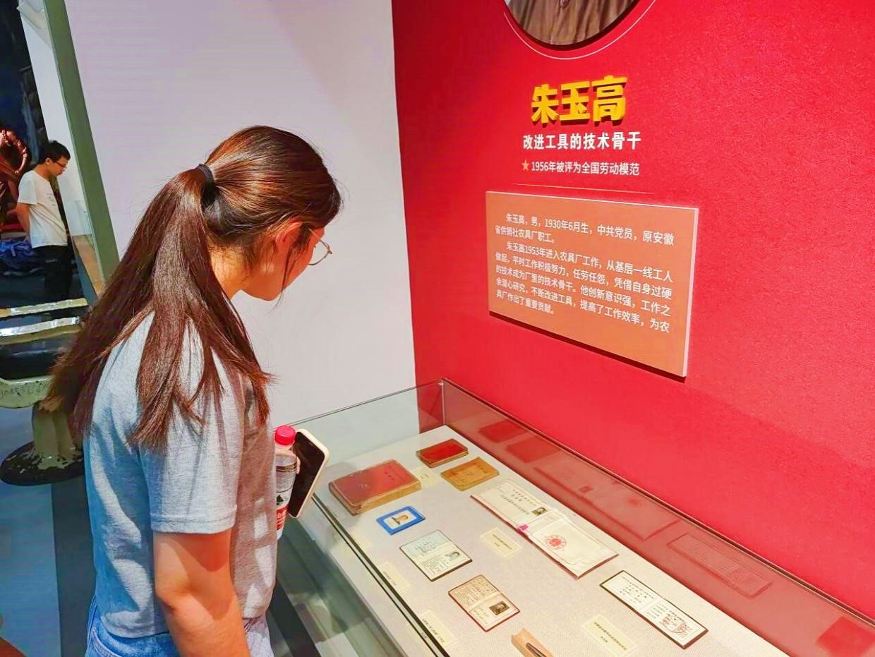 展馆内,同学们看到了各时期的劳模奖章、荣誉证书,和体现各时期劳动人民艰苦奋斗的劳动工具及劳动成果等实物展品9000余件,被一件件充满故事的现代工业模型所吸引,了解到了不同时期的各级各类劳动模范先进工作者的先进事迹。