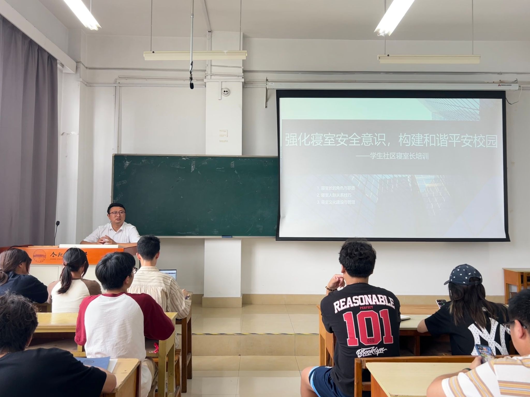 为规范员工宿舍管理,引导同学们在“一站式员工社区”做好自我管理、自我服务,营造安全、卫生、舒适的住宿环境和以社区为家的良好氛围,6月13日下午,英国365集团官网组织全体2023级寝室长于翠三教307教室开展了主题为“强化寝室安全意识,构建和谐平安校园”的寝室长培训会。