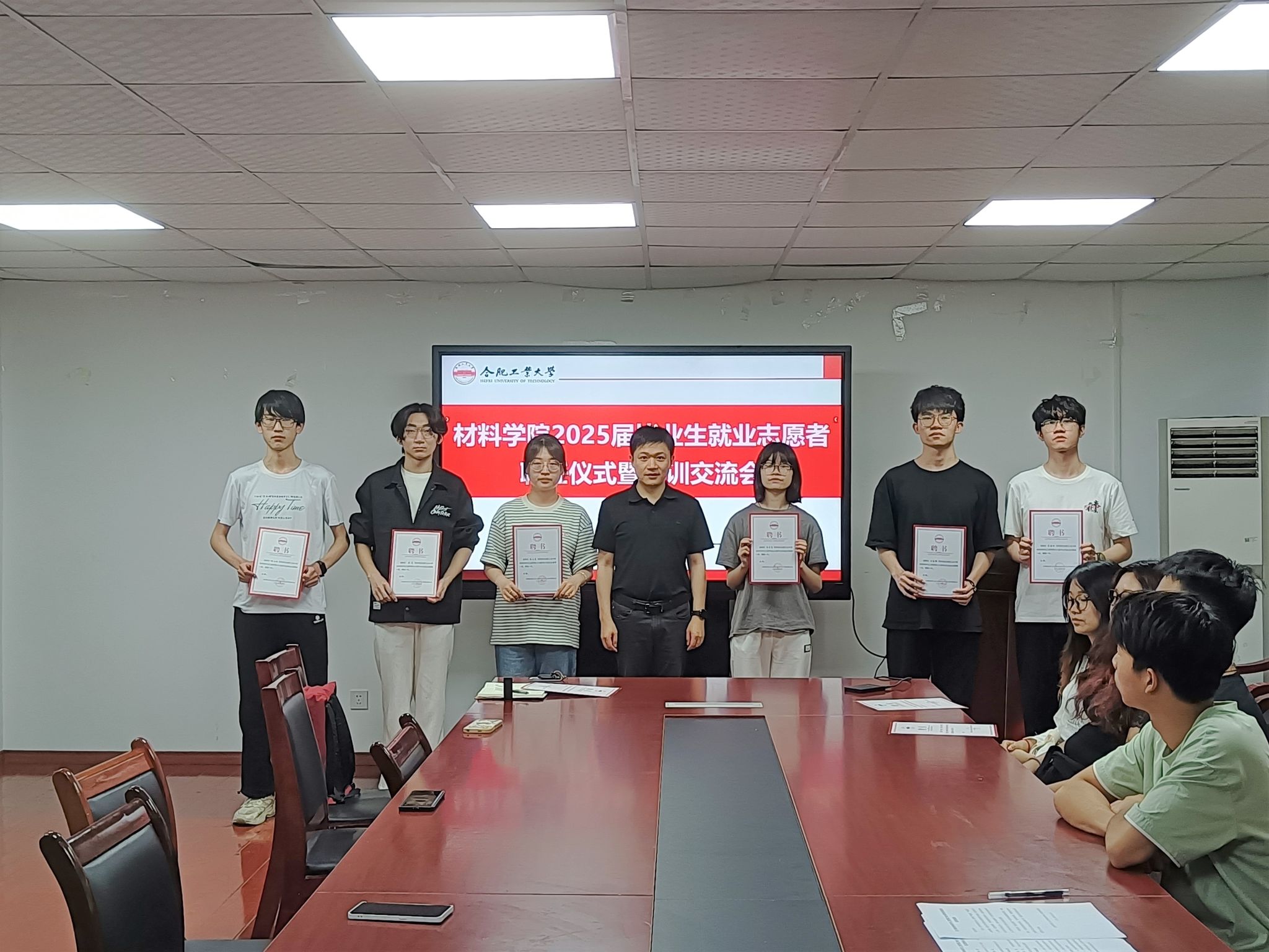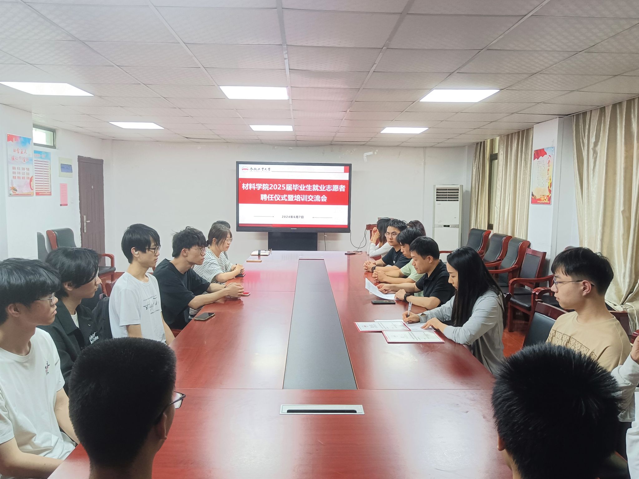 6月7日下午,英国365集团官网在材料楼党员之家举办2025届毕业生就业志愿者聘任仪式暨培训交流会。公司相关负责人、2025届毕业班辅导员和全体就业志愿者参会。