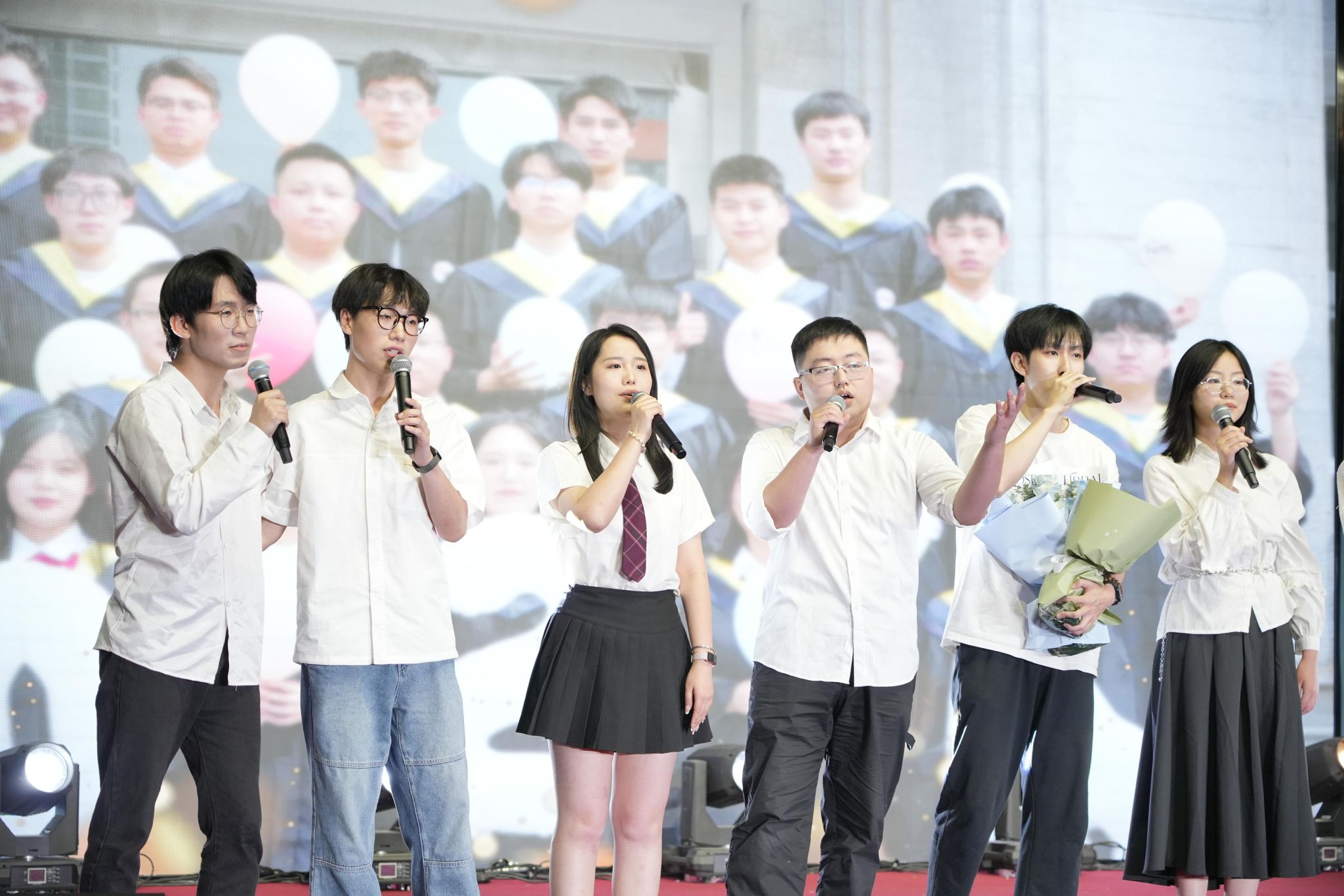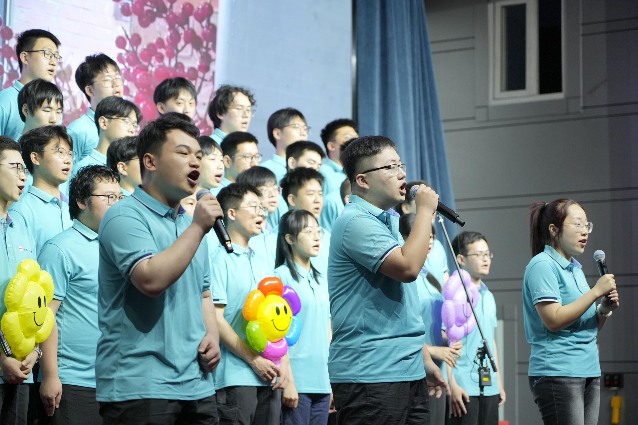 欢送会的最后,特别邀请公司党委副书记兼纪委书记朱峰演唱《此时此刻》,并代表公司向即将毕业的2024届毕业生们送上了诚挚祝福,希望同学们在最美的青春年华,一路向阳,脚踏实地实现人生理想。最后,晚会在全场师生合唱《朋友》中落下帷幕。整场晚会气氛温馨而愉悦,同学们用歌声、舞姿在舞台上展现出了材料学子的青春风采,表达了对2024届毕业生们的美好祝福。