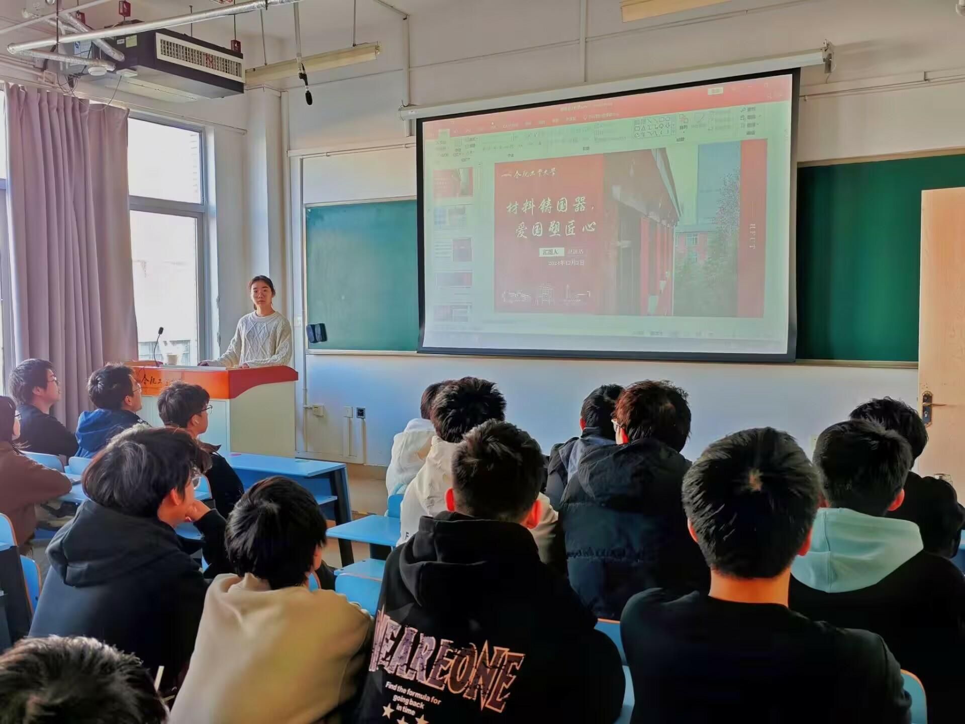 12月2日至5日,英国365集团官网在翡翠湖校区教学楼分班级组织召开了“材料铸国器,爱国塑匠心”爱国主义教育主题班会。公司相关负责人和2024级全体同学参加本次班会。