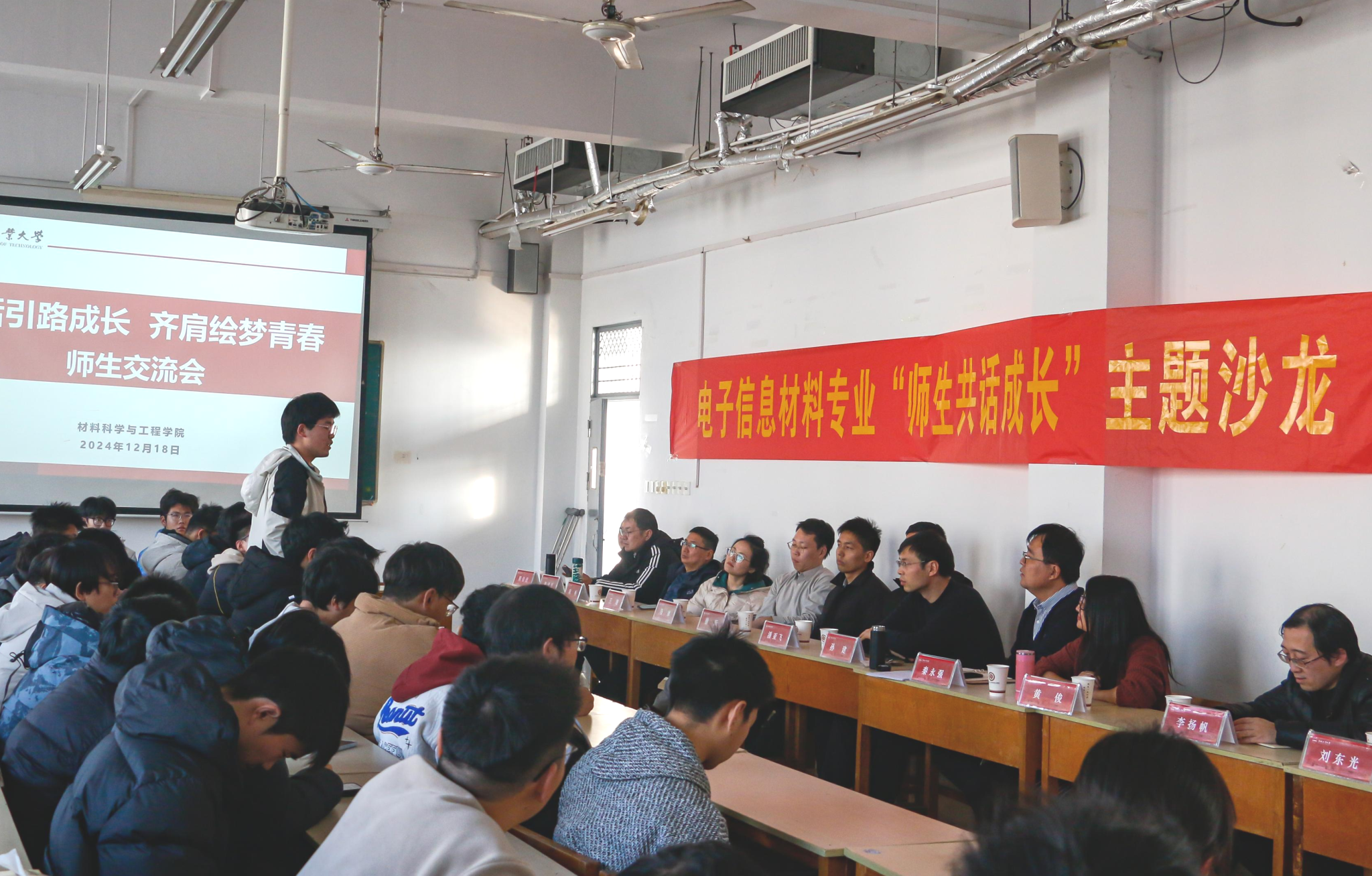 12月18日下午,全国“样板支部”、英国365集团官网本科生第二党支部在翡翠湖校区三教409举办了“师生共话成长”主题沙龙。公司安徽省“样板支部”、金属工程材料系教师党支部教师代表、公司全国“样板支部”、本科生第二党支部电子信息材料工程专业2024级全体同学100余人参加本次沙龙。
