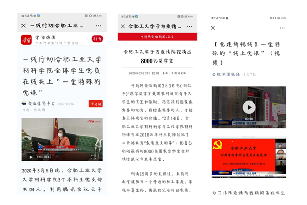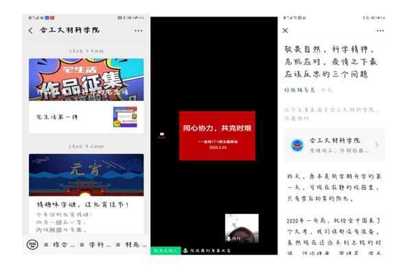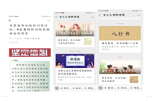 面对互联网时代的疫情防控和思想引导,公司积极发挥网络和新媒体阵地作用,策划一系列抗疫主题栏目,高频度、高质量推出网文、科普知识、法律知识、心理知识以及员工乐见的网络歌曲、漫画、家书等内容形式,利用哀悼日、国家安全日等重大纪念日积极引导员工言论和行为。辅导员、班主任和任课教师全员合力,通过线上主题班会、小班辅导、课程思政等多种形式,帮助员工提升科学素养、做到明辨是非、坚定理想信念,做到全方位、全过程、全覆盖。其中,公司党委书记余其俊书记给所联系的17级金创实验班同学的一封信,在校内外和师生中引起强烈反响,极大地鼓舞了全院师生。