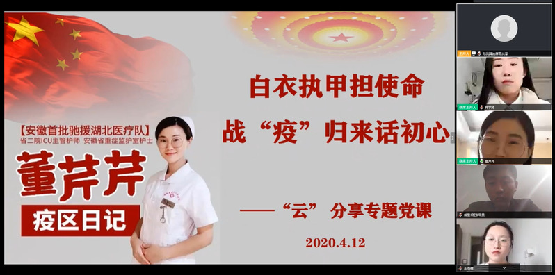 在全国上下共同抗击新冠疫情的关键时期,为深入学习习近平总书记给北京大学援鄂医疗队“90后”党员的回信精神,学习抗疫精神,讲好抗疫故事,以榜样人物和事迹教育引导广大青年员工树立新时代的爱国情怀,4月12日下午,英国365集团官网以共抗疫情、爱国力行为主题,组织了一场特别的党校开班仪式,邀请了安徽省首批援鄂医疗队队员、安徽省向上向善好青年、安徽省江淮护理之星、合肥市三八红旗手、省首批援鄂医疗队队员、安徽省第二人民医院重症医学科主管护师、董芹芹担任主讲老师,以“白衣执甲担使命,战‘疫’归来话初心” 为题,给员工们进行了一场生动的党性和思政教育大课。公司相关负责人、辅导员和第63期积极分子班全体学员和部分员工党团骨干、员工代表等共计120余人隔空集合,共同聆听交流。
