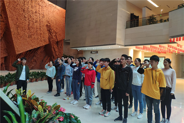 “对党忠诚,为共产主义奋斗终身!”在学员班班长陈志浩的领誓下,全体员工党员在展馆内再一次面对鲜艳的中国共产党党旗进行了庄严宣誓仪式,重温了入党誓词。