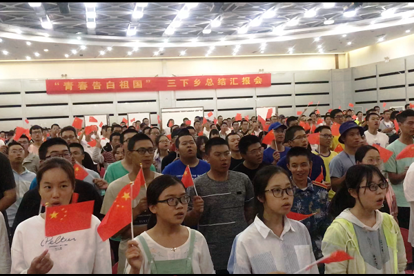 最后,同学们齐唱歌曲《国家》。伴着慷慨激昂的歌声,同学们挥舞着鲜艳的国旗,本次分享会落下帷幕。