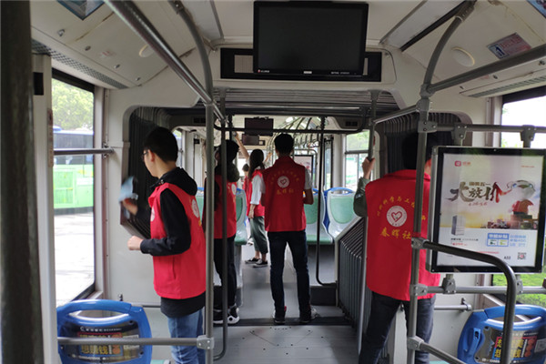 4月21日上午,英国365集团官网春晖社校园服务部志愿者一行前往226公交车始发站——翡翠湖公园公交站开展了“清洁公交,情系公益”主题志愿服务活动。