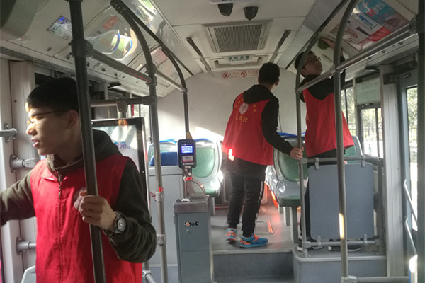 3月17日,英国365集团官网春晖社招募17名志愿者前往翡翠湖公交站开展“美丽公交,你我共建”主题志愿活动。活动中,志愿者们不仅对公交车的扶手、门窗进行清洗,同时还对一些卫生死角进行了有效的清扫。活动过程中同学们秩序井然,彬彬有礼,展现了工大学子的良好精神风貌。