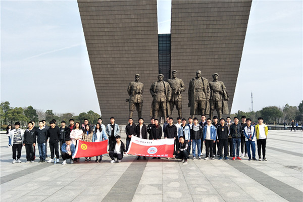 上午九点半,各基层团支部代表一行抵达渡江战役纪念馆。在工作人员的带领下同学们先后参观了总前委群雕、主题纪念馆、胜利塔等特色革命建筑。在高大的总前委群雕前,同学们聆听了谭震林、陈毅、刘伯承、邓小平和粟裕五位总前委成员运筹帷幄,决胜千里,指挥百万雄师横渡长江天堑的恢弘事迹。来到纪念馆内,同学们通过馆内陈列的珍贵图文史料、战争实物、影像资料等进一步感受了百万雄师过大江的历史场景。参观结束同学们在“胜利之师”的群雕下用洪亮的声音合唱了《中华人民共和国国歌》,以此来表达对革命先烈的敬仰之情。