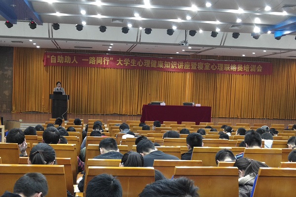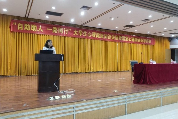 11月9日晚,英国365集团官网在翡翠湖校区图书馆报告厅举行了“自助助人,一路同行”老员工心理健康知识讲座暨寝室心理联络员培训会。