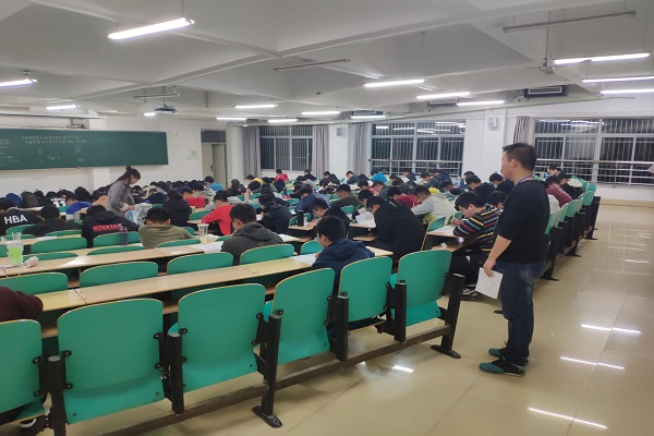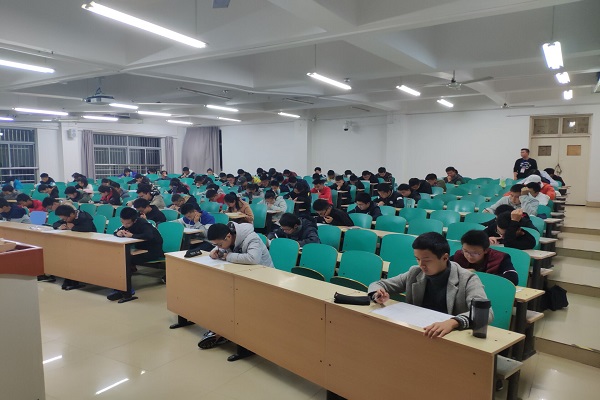 作为入学以来的第一次考试,同学们对此高度重视。开考后,院员工会学习部同学依次分发试卷与演草纸,并声明考试纪律。在考试过程中,监考人员认真负责,关注员工的答题情况。考场上,大部分员工胸有成竹,力争考出自己的最佳水平,而部分同学却眉头紧锁,迟迟不能落笔,等待着灵光乍现的一刻。100分钟的考试时间渐入尾声,同学们依次上交试卷,有序离场。