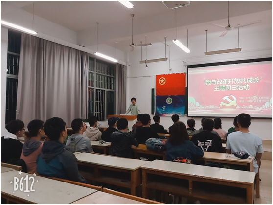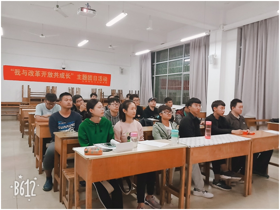 活动开始,班级团支部书记王灏霖同学就“改革开放40周年,我与改革共成长”的主题调研成果做了简单的汇报,主要围绕农村地区土地改革情况、城市道路交通建设情况、乡村网络发展情况、公共卫生和服务的改善情况等方面做了详细的阐述。随后,在团支部支委的组织下,支部团员集体就习近平总书记在十九大报告中提到的“十项伟大成就”进行主题学习和讨论,大家各抒己见,现场气氛热烈,取得了较好的反响。最后,支部成员共同观看了《厉害了,我的国》,影片中展示的一个个壮丽的场景让在座的各位同学无不拍手称赞祖国的繁荣昌盛。