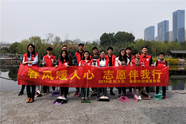 为践行雷锋精神,积极投身于志愿活动的号召,3月24日,英国365集团官网2016级英才班团支部前往翡翠公园开展“春风暖人心,志愿伴我行”志愿清扫活动。