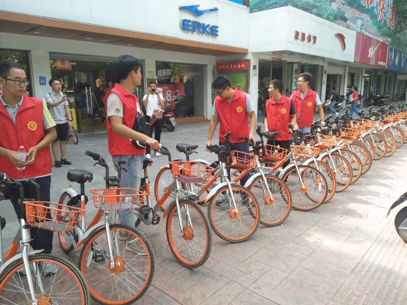 随后,公司志愿者开始行动起来,将路边乱停乱放的共享单车系上黄丝带并摆放到规定的停车地点。最后,摆放整齐的共享单车成为合肥市路边一道亮丽的风景线。