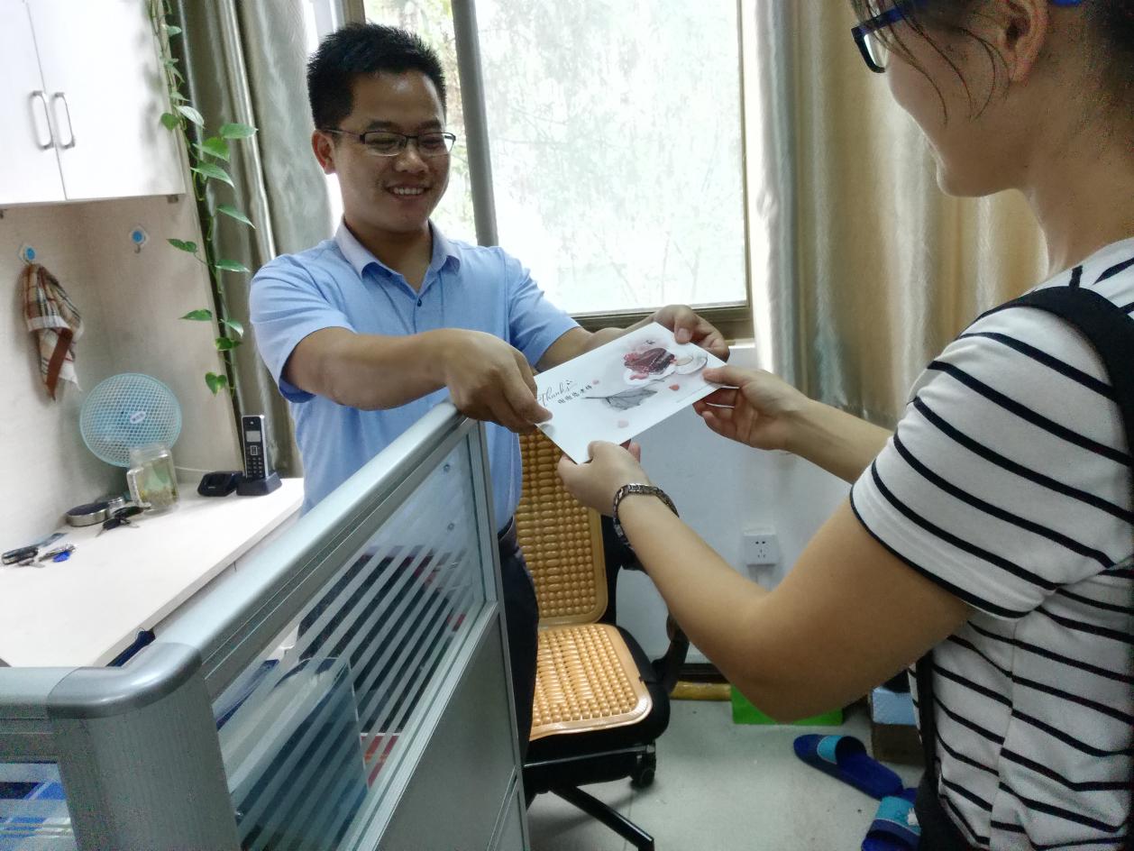 教师节前夕,为了表达同学们对老师的祝福之情、感恩之意,进一步加深师生之间的感情,公司研会的同学们认真写好贺卡,一一给老师送去并表示祝福。老师们在收到贺卡后,脸上流露出喜悦与欣慰。在本次活动中,新同学感受到了教师默默耕耘,无私奉献的精神,并向老师表达了对于他们的敬意,感谢老师的辛勤工作,并通过实际行动表达对老师的敬意,让整个英国365集团官网洋溢着欢喜的气氛。