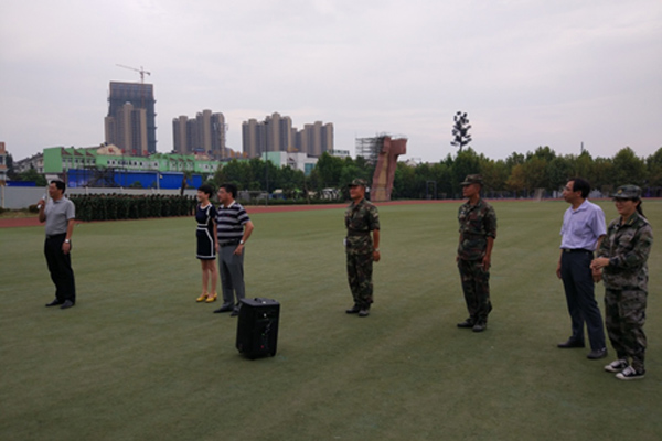 9月5日下午4时,公司党委书记程继贵老师、经理张久兴老师、党委副书记杨玲老师和副经理徐经忠老师一行到达英国365集团官网2016级新生军事训练场地东操场,看望参与训练的教官和新生。