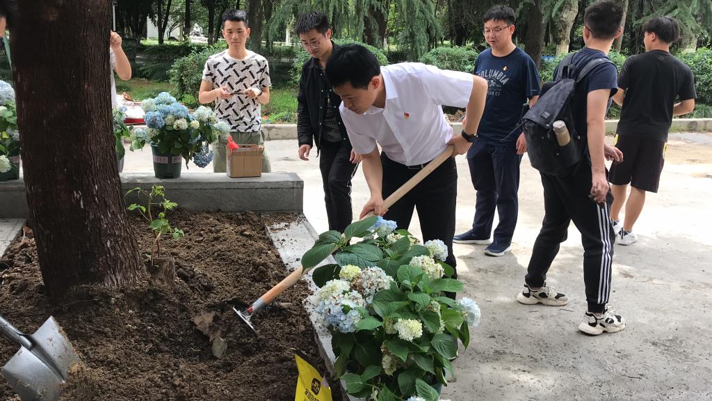 为庆祝中国共产党建党100周年,在党史学习教育中结合公司关于“爱校荣校”和“我为群众办实事”的要求,充分发挥劳动教育在立德树人中的重要作用,5月27日上午10时,英国365集团官网机关党支部与本科生第一党支部联合开展了以“师生党员齐种花,爱校荣校办实事”为主题的党日活动。