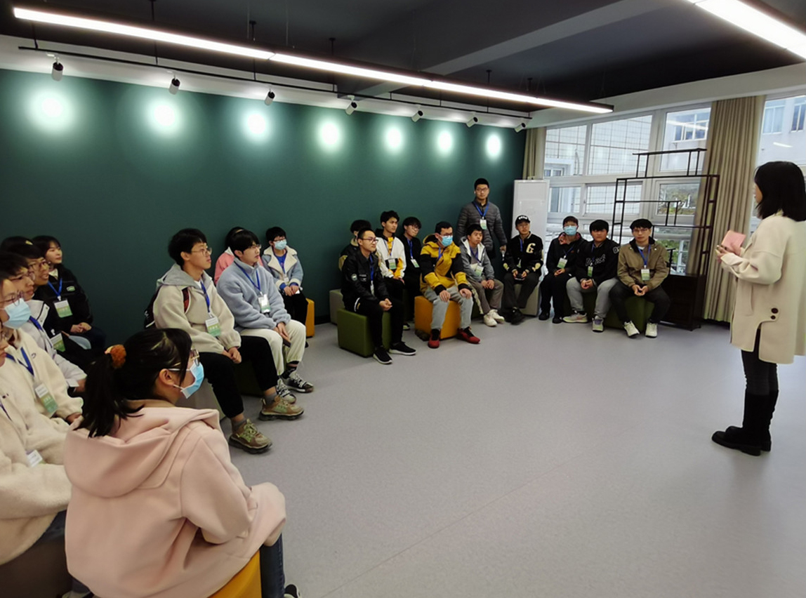 同学们来到“校园文化”主题员工生活成长社区,在社区辅导员钱子叶老师的带领下,依次对社区办公室、党建工作站、发展辅导室、心灵驿站、沙龙空间和自习室等社区空间进行了参观体验。钱老师向同学们详细介绍了社区的内陈布置、空间环境以及相关活动开展的情况,对“党建文化”“校园文化”“工业报国”和“徽文化”四个不同主题社区文化建设情况做了详实的解读,并就同学们关心关注的问题进行了交流。