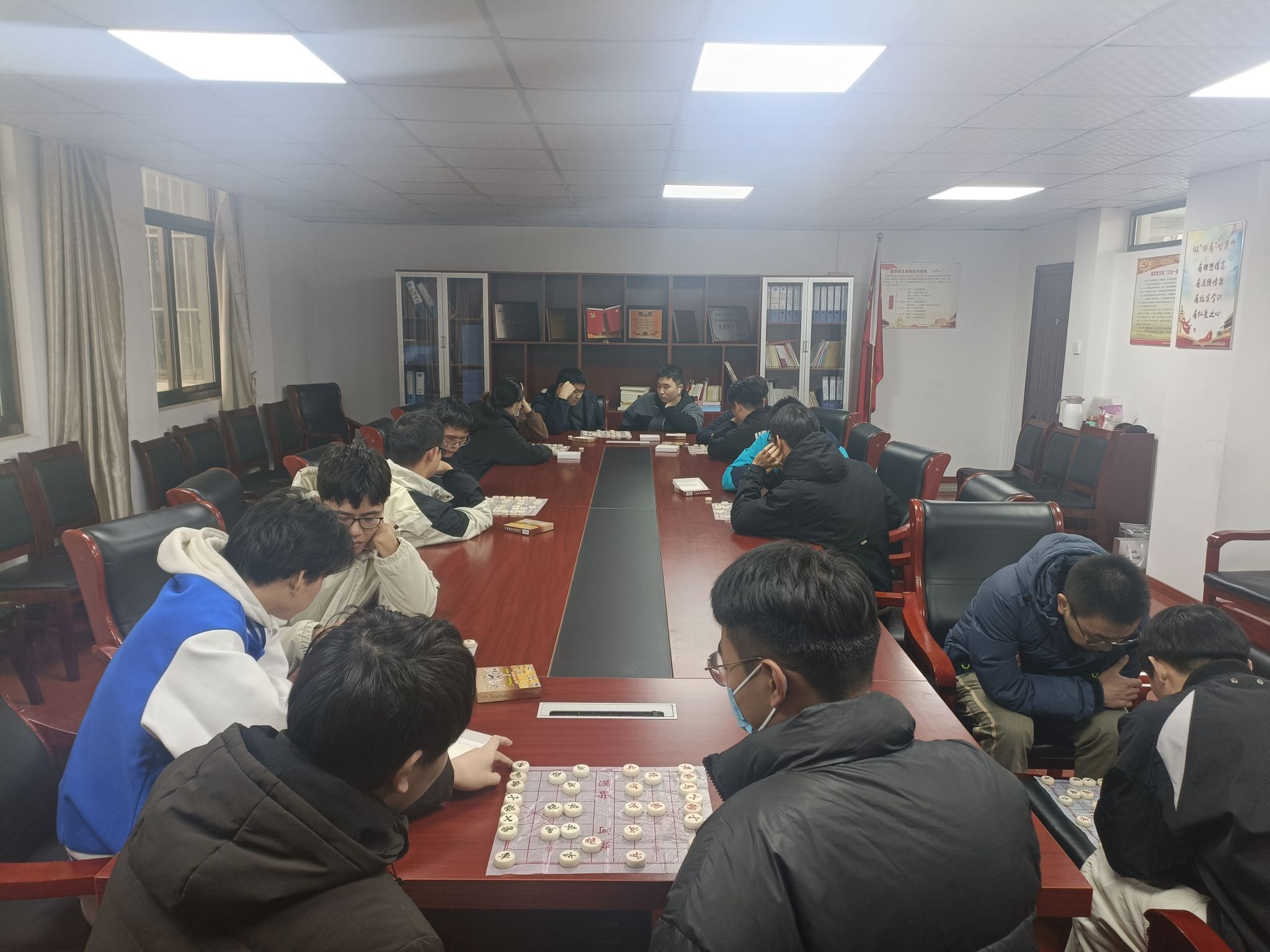 英国365集团官网于12月3日在材料楼党员之家举办了一场以“纹屏乐道,乐在棋中”为主题的精彩象棋比赛。